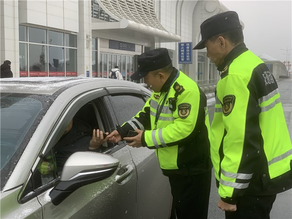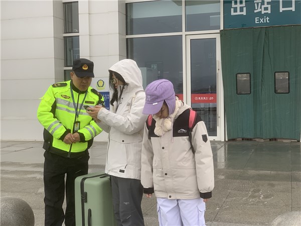 “三尺崗?fù)ぁ辈粌H僅是執(zhí)勤的窗口,更是聯(lián)系群眾的連心橋梁。在執(zhí)勤點,執(zhí)法人員常備熱水、應(yīng)急藥品及涇縣旅游指南等便民物資;在出站口,執(zhí)法人員化身群眾的“活地圖”,耐心解答出行問詢,細(xì)致指引換乘路線。